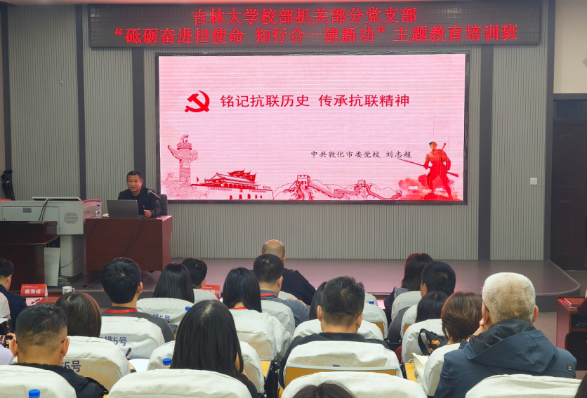 专题教学环节,敦化市委党校副校长刘志超以“铭记抗联历史 传承抗联精神”为题授课,从东北抗日联军的发展历程、历史作用及精神内涵切入,生动还原抗战岁月的艰辛,深刻阐释了抗联精神中“忠诚于党、忠贞报国”的坚定信念,“不畏艰苦、百折不挠”的奋斗意志,以及“勇赴国难、血战到底”的民族气节。